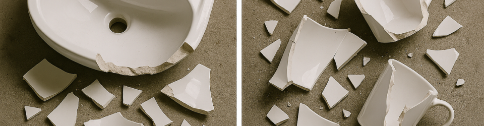 Połamana ceramika łazienkowa